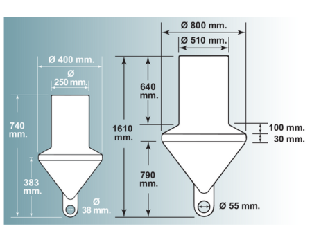 * Medidas: Diámetro 400mm. Alto 740 mm. Flotabilidad 38 kgs.