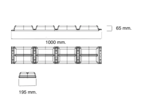 * Medidas 1000 x 195 x 65 mm. Peso 1040 gr.