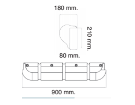 * Medidas 900 x 210 x 180 mm. Peso 1660grs